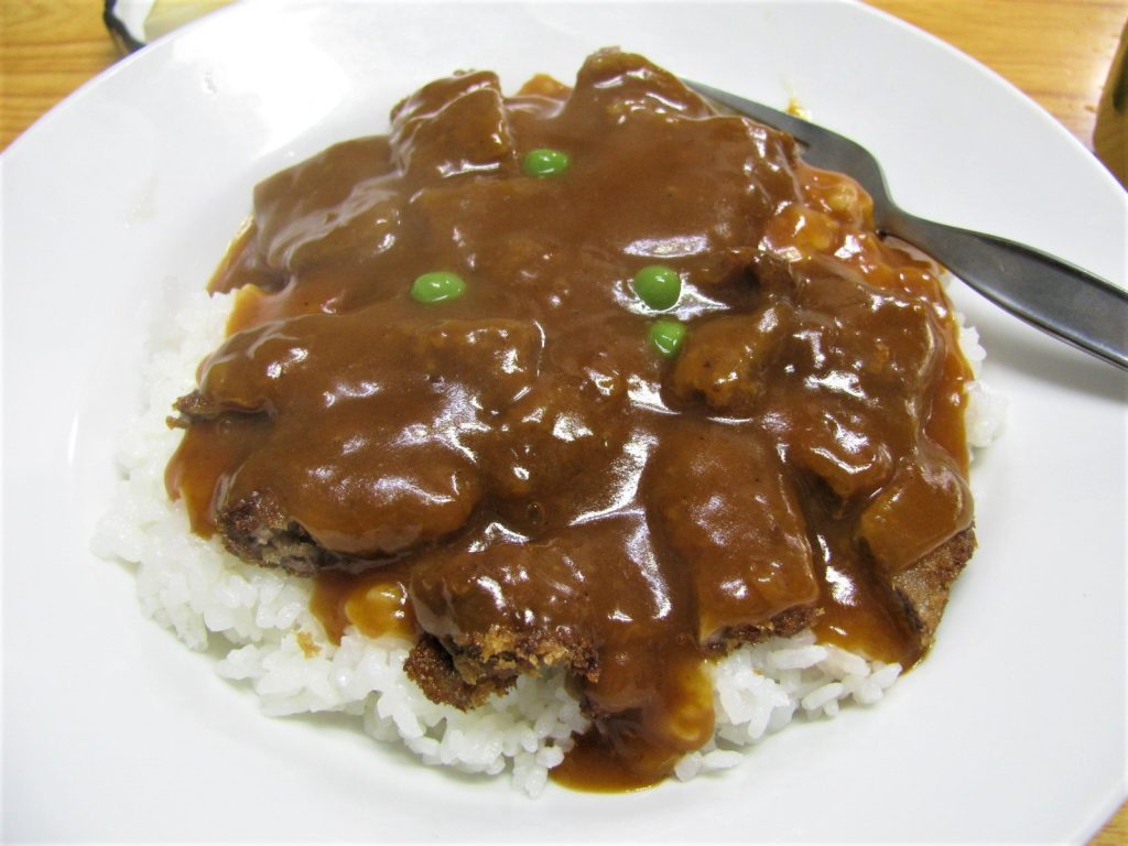 『特製カツ丼』は、ビーフカツにデミグラスソースをかけたもので、「カツ丼」というよりは「カツライス」と言う方が相応しい料理で、長岡の『洋風カツ丼(※出張Bレポート長岡100428)』に姿・形が酷似しています。が、味の方は断然こちらの方が美味しく、 食べやすいように細かく切ったビーフカツに、少し甘めの味わい深いソースで、何とも結構なお味でした。ただ、これで¥1,100・・・CPは少し・・・?かな。