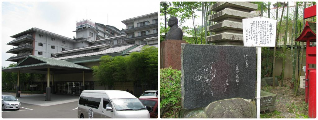 明治の児童文学者・巌谷小波(いわやさざなみ)は舌切り雀の伝説が伝わるという磯部を訪れ、舌切り雀の昔話(日本昔噺)を書き上げた。おとぎ話自体は各地で昔からあるものの、巌谷小波が児童文学として現代に残したことにより、磯部温泉は「舌切雀伝説発祥の地」とされている。なお、「舌切雀のお宿ホテル磯部ガーデン」には巌谷小波がその時詠んだ句、「竹の春 雀千代ふる お宿かな」の句碑がある。※Wikipedia