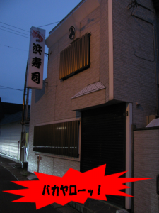 人通りのない淋しい町を歩いていくと、その店の案内看板があります。それに導かれて、通り の奥に入っていっても、それらしきお店がない・・・ふと横を見ると・・・シャッターに固く閉ざされた「浜寿司」がそこにあります・・・