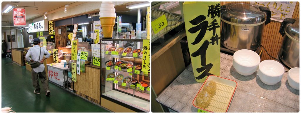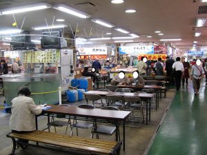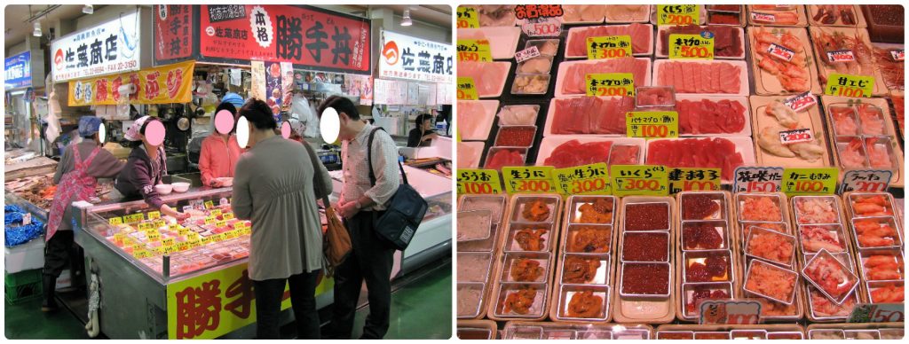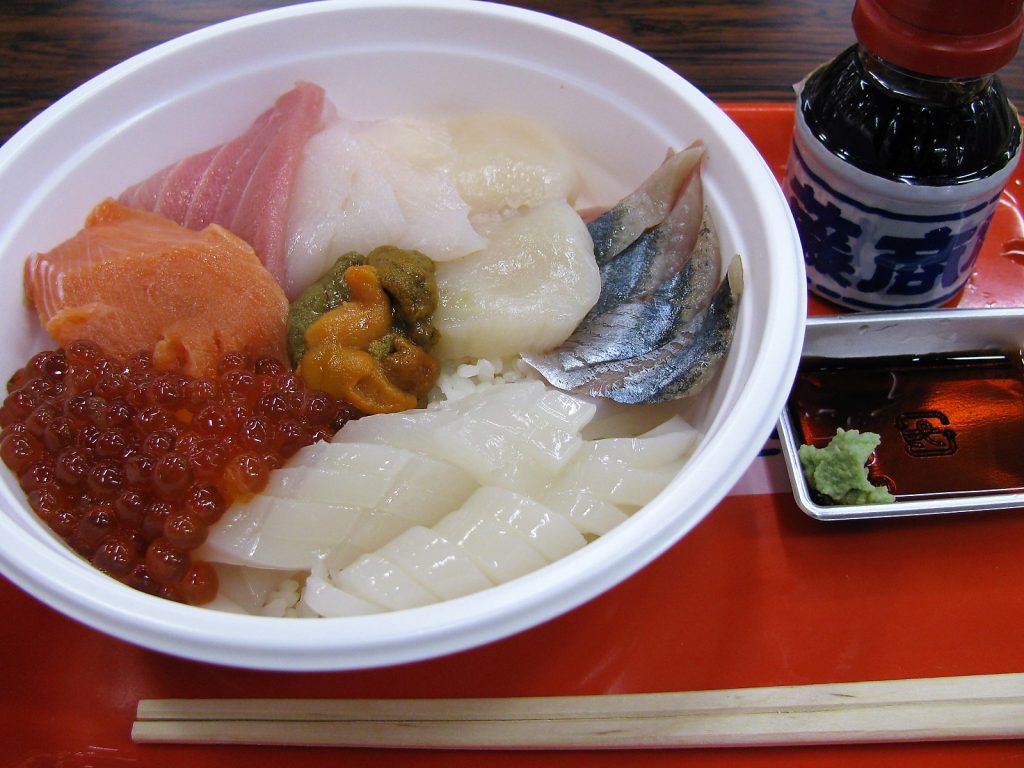 また、ご飯にお気に入りの魚介類を買って載せ、自分好みの海鮮丼を作って行く勝手丼のサービスでも有名。※Wikipedia