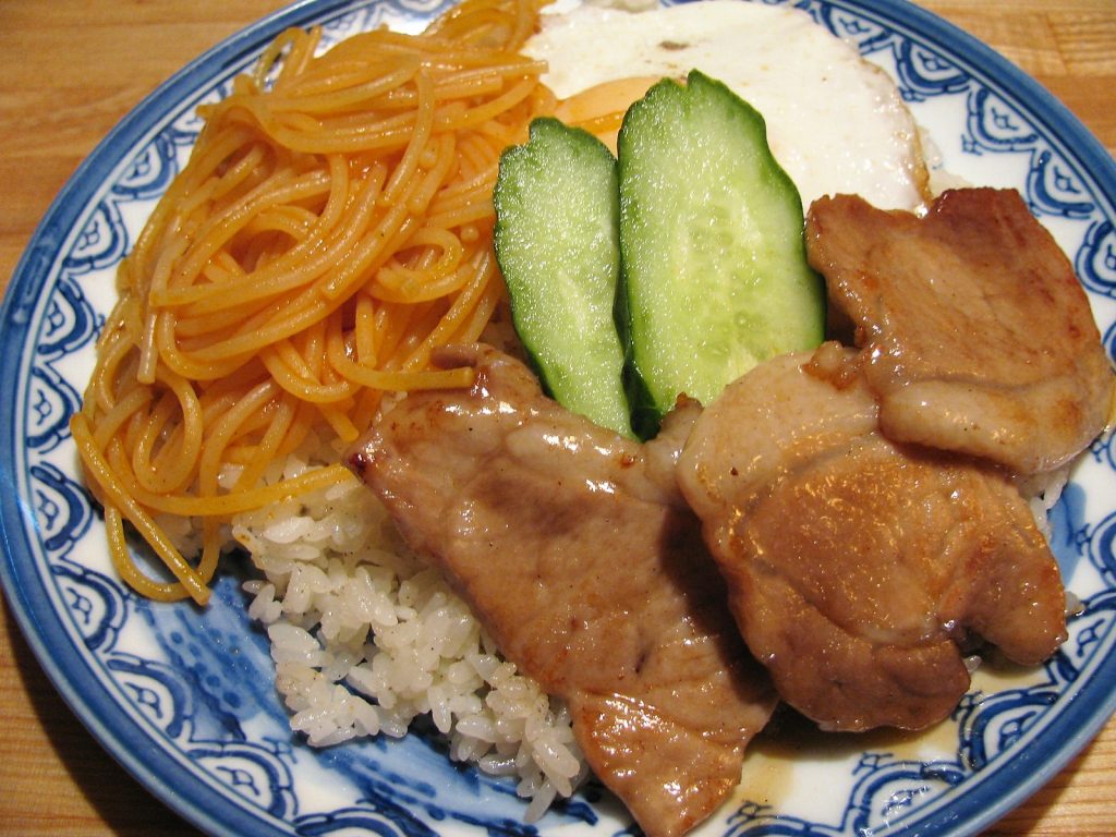 パンチライスも、“根室めし”のひとつ。ご飯又はバターライスの上にスパゲティと目玉焼きと豚肉のソテーがのっているのが標準。