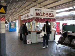 今日は、小倉駅よりJRで関門海峡の大瀬戸を渡り(※もちろん海底トンネルでです。電車では海を渡れませんから。)、本州は山口県下関に入ります。 しかしその前に、JR小倉駅7・8番ホームで、朝食と致します。