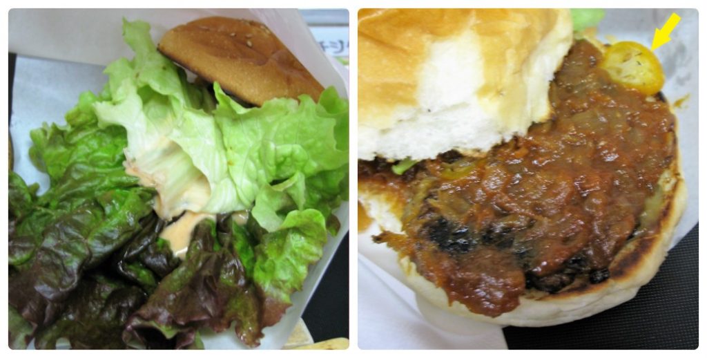 さらに、写真で分かるように、これでもか!と全てを覆い隠すような地元産サニーレタス。止めが、“ピクルスの代わりにキンカン”・・・