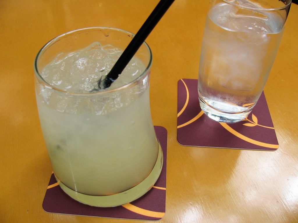 甘酸っぱい味は、想定内というよりずばり真ん中ストライクで、ごく普通の美味しさです。まあ・・・若い女性客二人がカウンターでカクテルを楽しんでいる横で、このジュースを味わうのもまた一興です。