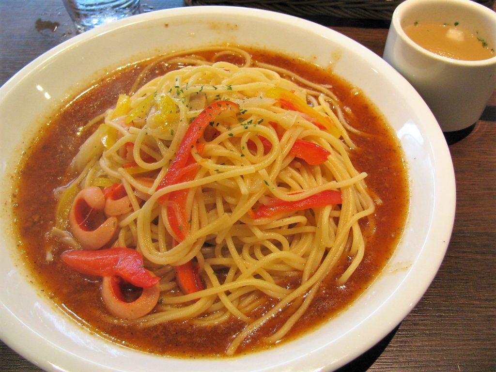 そんなところに、あんかけスパですヨ。多分愛知万博開催の折に、名古屋めしとしてメニューに加えたものと思われますが、小生、逃すわけにはまいりませんので訪問です。