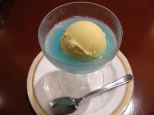 ただ、オホーツク海と流氷をイメージした、この店の「オリジナルデザート」は、薄明りのレストランに映え、うっとりする美しさを放っています。