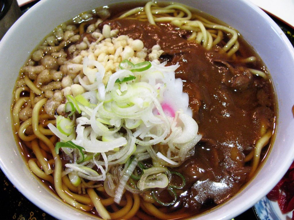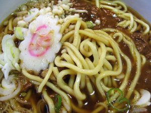 うどんの汁(つゆ)の中に中華麺、しかも、中途半端な量のカレーが入っている・・・何とも不思議な食べ物です。