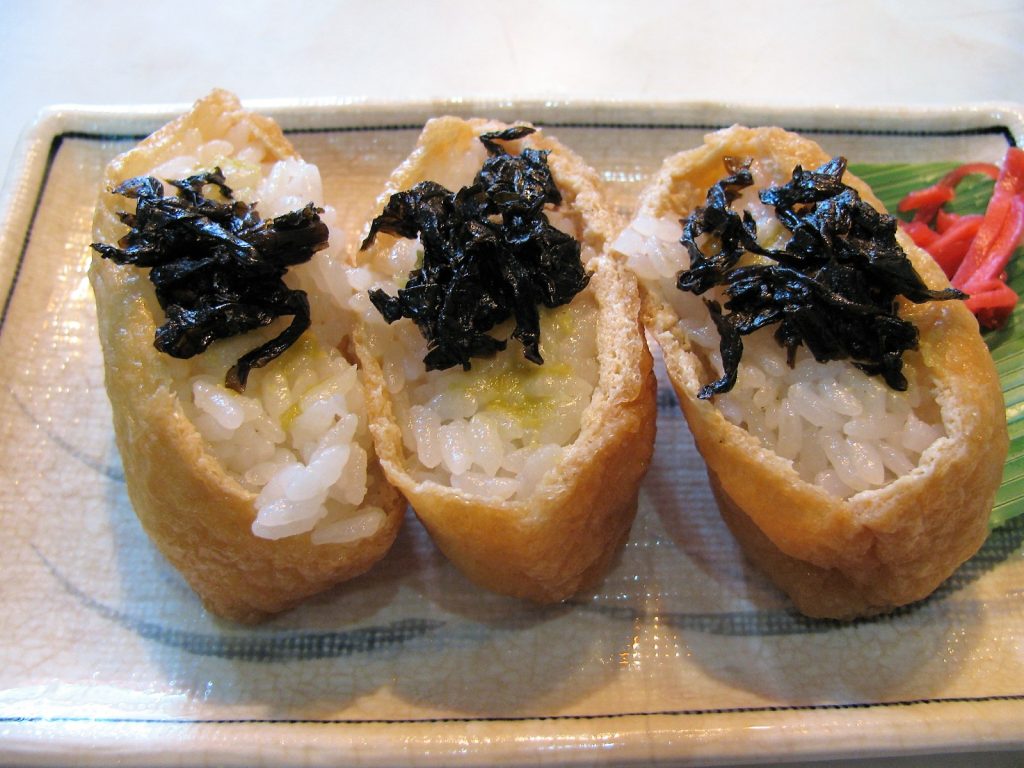 袋状に開いた油揚げを甘くあるいは甘辛く煮付け、寿司飯(酢飯)をそのまま、あるいはニンジンやシイタケなどの具材を混ぜ込んで詰める。もっと具だくさんの、いわゆる「ちらし寿司」を詰めることもある。