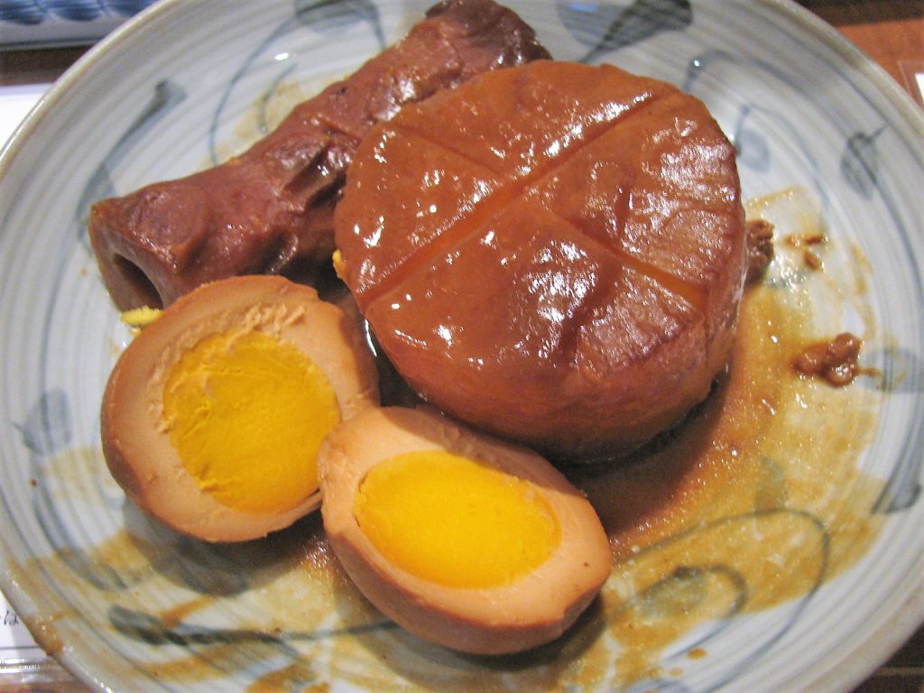 小生は「卵、大根、ちくわ」、悪友は「卵、厚揚げ、こんにゃく」をラインナップ。さすが悪友さん、大好物の「卵」だけは外しませんネ。