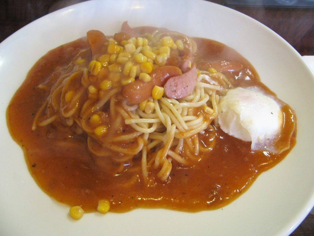「あんかけスパ探検隊」80店目のお店は、あんかけスパのメッカ「一社地区」で1店舗だけ未踏破だったお店です。小生の注文は、「デラッ クスL」という基本のコーンとウィンナに加え、温泉卵がトッピングされているものです。