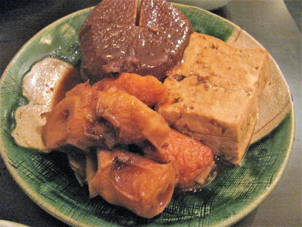 やっとテーブル席に落ち着いた小生たち、何事もなかったようにジャンジャン発注です。まずは、ここの売りの「名古屋みそおでん」からです。女性スタッフによると、おでんは全て2つにカットされているので、2つ注文する必要がないのだそうです。