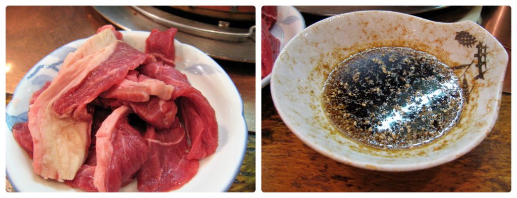 そして、遂に「ジンギスカン」の登場です。ここのは、毎日届く新鮮な生のマトン肉を使用しているとのこと。ここからは、お客自身で焼き 上げるシステムです。