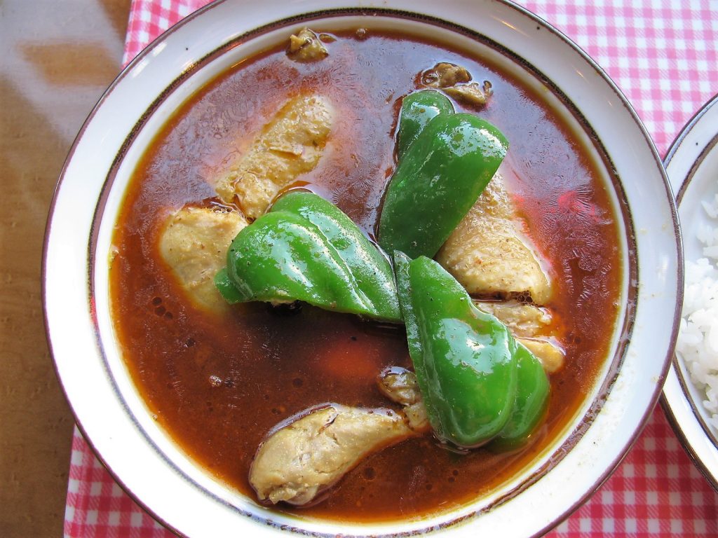 サラサラしたスープ状のカレーである。具の野菜や肉類を大ぶりにカットしたり、あるいは丸ごと投入するのも大きな特徴である。