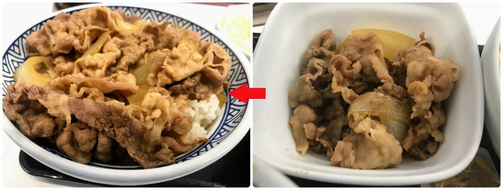 - 丼にてんこ盛りの牛肉を期待したが、増量分が別容器に入っている、、?おネエさん店員に「自分でかければイイのかな?」と聞くと「ご自由にどうぞ」だとさ。配膳時にこぼれる可能性が高いのでそうしていると推察できるが、これでは”ただいま売出し中!”の迫力に欠ける、、