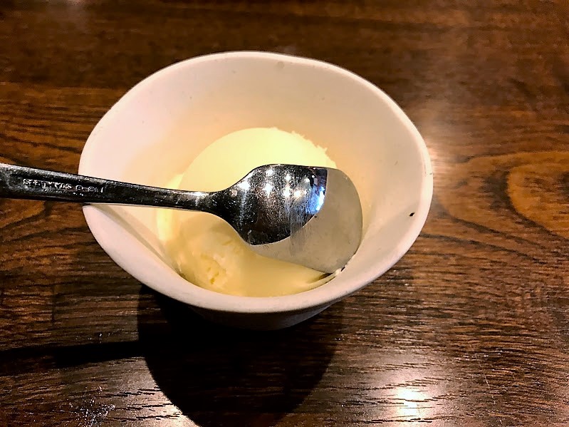 - 十分満足して会計しようとしたら、なんと!まだデザートのアイスクリームがあるという。しかも、量的にもけっこうなものだ。これで本当に700円でイイの?、、こちらが心配になるワ。
