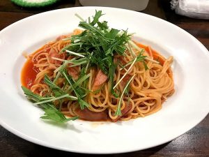 - 本体のパスタ、まずそのお姿が美しい。味も、トマトの酸味を抑えた上品な味わい。旨味は、全体的にイタリアンらしくそれほどでもないが、その分素材(トマトとソーセージ)の旨味が合体して、めちゃウマですわ。それに食べ終わった後の”追いパンサービス”が何とも憎いネ。残ったソースをたっぷりつけて頂きましたヨ。