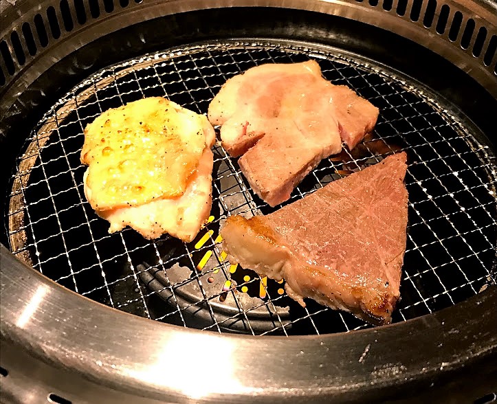 - 後で気づいたが、肉を焼く際、、皿の上で予めカットして少しづつ焼くのが正しいのか?小生のように、いきなりまんま焼いて後でカットするのが良いのか?、、たぶん前者のような気がする。後者の場合、カットするための皿がもう一枚必要だからだ。仕方ないので、生肉を乗せていた皿をおしぼりで拭いて使ったよ。初めに教えてヨ!