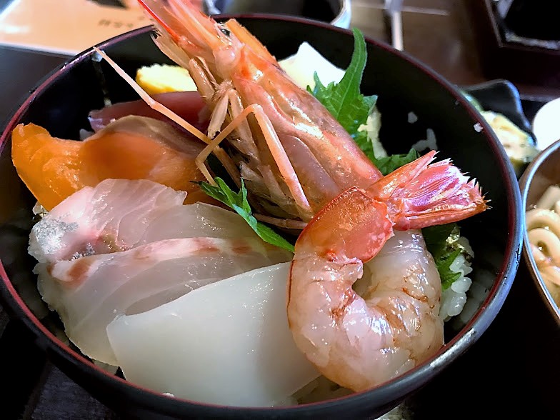 - 海鮮丼のネタの豊富さ、新鮮さは抜群。キハダマグロさえ美味しく感じられる、、?特にエビの大きさには舌を巻く。これだけでも人を惹きつけるナ。