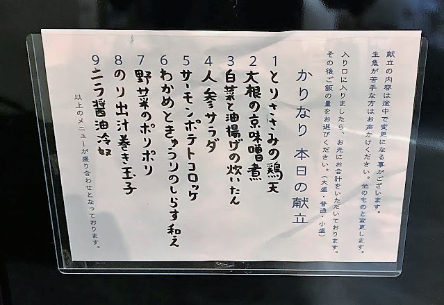 - 9種類はバラエティ豊かで良いのだが、あまりにも量が少ない。デパ地下の試食みたいで満足感に乏しい。どれも味の印象が薄くなってしまう、、あ、たくさん食べたければ夜の部に来い、ということか、なるほどネ。