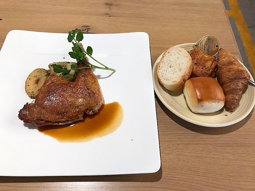 - メインの「もも肉のコンフィ」が極上。表面パリッ、中しっとり柔らか。めちゃウマだ。しかも、、あら不思議、造作なく骨からポロリと肉が取れて、、シェフの見事な腕前に感服だ。