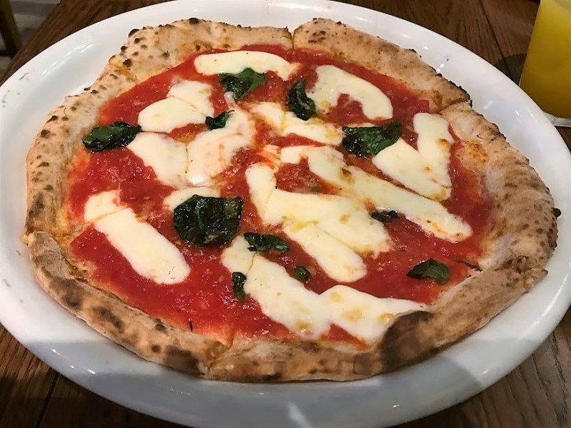 ※マルゲリータ:イタリア料理のピッツァの種類の1つで、ナポリピッツァの代表でもある。トマトソースの上に、具材としてモッツァレラチーズとバジルの葉を載せたもの。トマトソースの赤、モッツァレラチーズの白、バジルの緑はイタリアの国旗を表す。その名は、ナポリを訪れたイタリア王妃マルゲリータ・ディ・サヴォイア=ジェノヴァに由来すると言われている。※Wikipedia