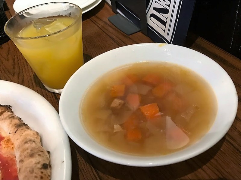 - セルフサービスのスープを入れる容器が浅く平たい形状。だから、自分のテーブルに運ぶ時に火傷しそうになった。マグカップのようなものに変えたら?(※いくらセルフだって、なみなみ入れちゃあ持ちづらいでしょうに、、?)