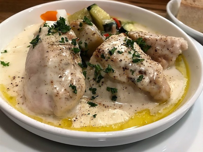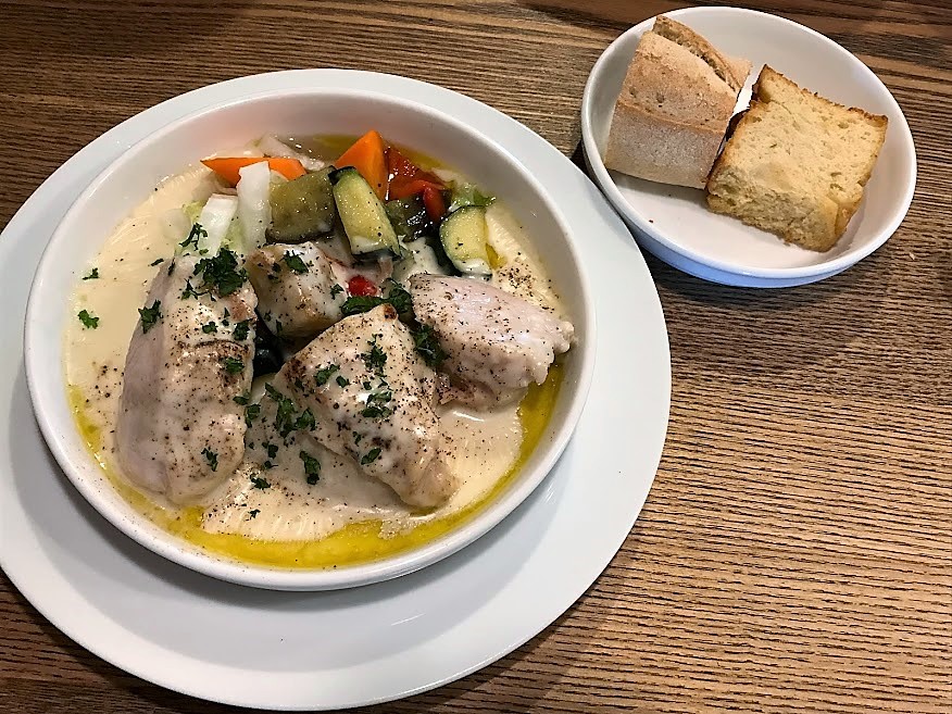 • クリーム煮込みの、ややもすると濃厚すぎる味わいを レモンのさっぱりした酸味が和らげている。素晴らしいコンビネーションだ。鶏肉の柔らかい仕上りと旨味も加わり、完璧な出来だ。さすがフレンチ!最高ですわ。(😇フレンチには何故か手放しに甘いネ。これもある意味、貧乏人の偏見なのか、、?)