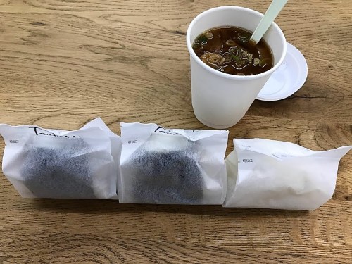 Lunch set:お好きなおにぎり2ヶと具だくさんの日替わり豚汁+追加おにぎり1ヶ