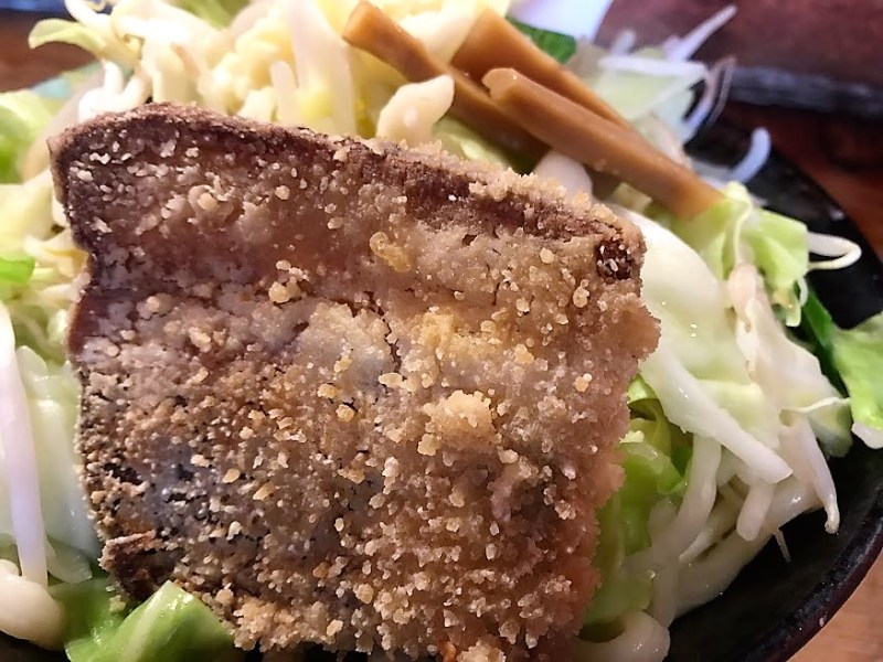「デブセブラーメン¥950」は揚げチャーシューが1枚、「デブセブハイパー¥1250」は揚げチャーシューが4枚、「デブセブハイパーライト¥1250」は柔らか揚げチャーシュー4枚がトッピングされており、いずれも相当のカロリーで、大盛ラーメン大好き人間にはたまらないメニューとなっている。