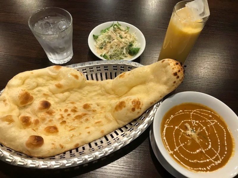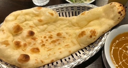 - カレーに劣らずナンもうまい。通常よりやや小ぶりだが、ふっくらもちもち、小麦の良質な味わいも伝わってくる。ただ、、おかわりナンは超熱々。火傷に気をつけよう!(😇面の皮、、いや指の皮が厚くって良かったネ、、?)