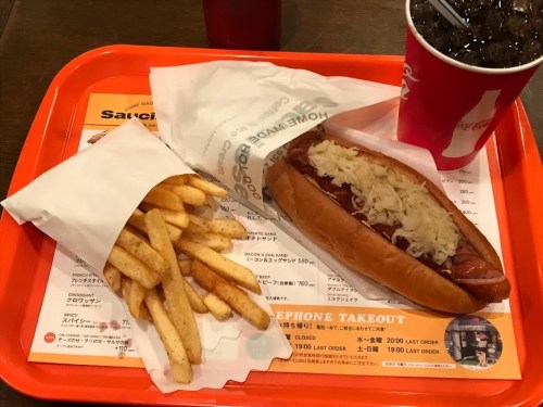 - ホットドッグのソーセージの旨味は言うに及ばずパンの出来が秀逸。咀嚼にシンクロしたその弾力感は食べる者を虜にする。これでサイズがもっと大きければ満点なんだが、、(😇普通の人のサイズに合わせてあるの、、?)