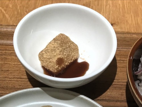 - デザートのわらび餅が何気にうまい。甘い黒蜜に包まれた柔らかいわらび餅ときな粉の風味が最高。もっとも「ミニデザート付」と知らなかったことが、その味わいを倍増してるのかもしれないが、、(😇しょせんあんたの味覚はその程度なの、、?)