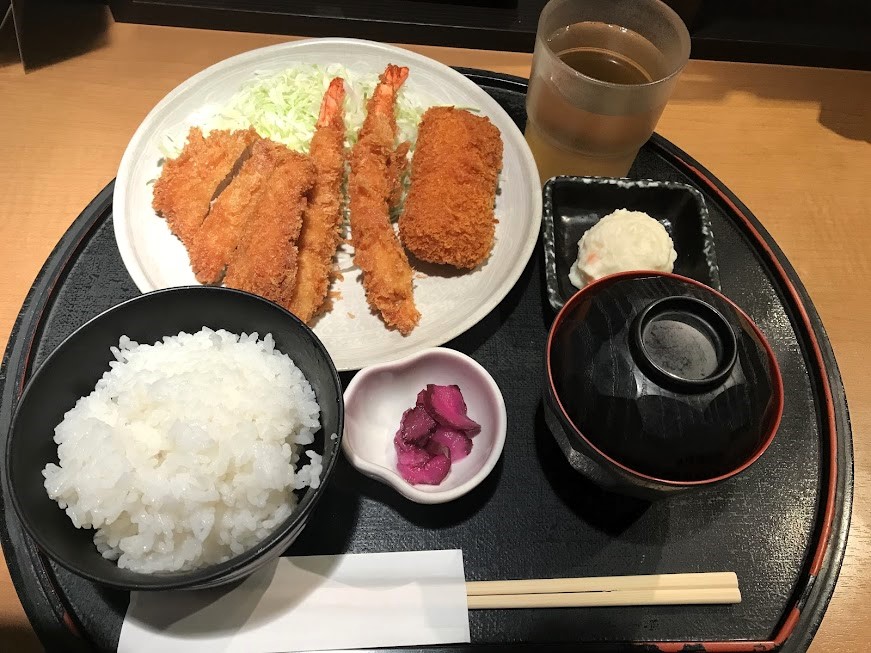 Bランチ:海老フライ2本・ヒレカツ・カニクリームコロッケ