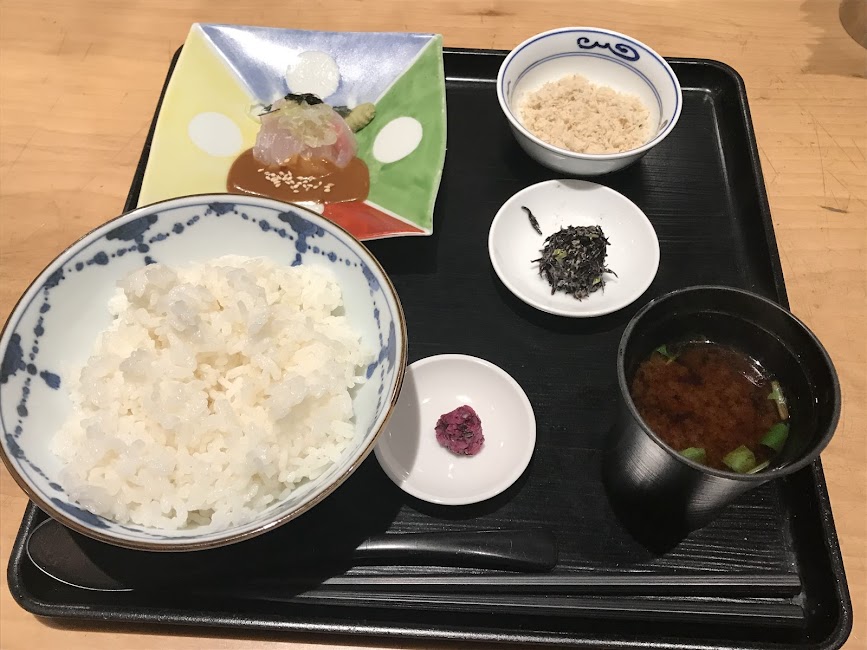 - ごはんがメチャうまい。さすが日本料理の銘店だけあって、お米の質もその炊き方も超一流。ふんわり柔らかだが、ごはん粒一つ一つが立って、米の旨味が口の中に広がる。これなら何杯でもいけるワ。(😇あんたは普通の出来でもでしょ?、、)