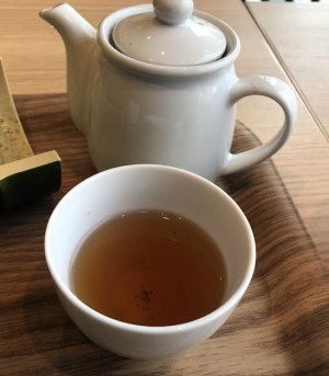 - ほうじ茶が抜群にイイ。(高い)日本酒の要領で、少し舌に含みそれを喉に徐々に流し込むと、あ〜れ、なんと香ばしい。しかもその奥にこのお茶のもつ高貴な味わいさえ感じられる。素晴らしい。(😇いつも出涸らしのお茶 飲んでるからネ、、?)