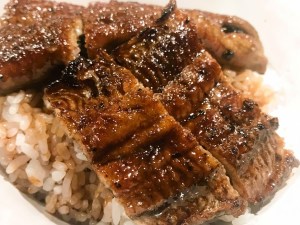 - うな丼が登場した。思ったより蒲焼きの枚数が多い。ごはんもたっぷりある。これならひもじい思いをしなくて済むワ。けど、※減点ポイントに続く、、