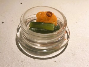 - 浜名湖の青さが入っている赤だしがうまい。赤味噌の完全なるコントロール、、珍しく旨味たっぷりで最上の出来。美味しい味噌汁に仕上がっている。なんだ、努力すれば出来るンじゃない。(😇これがフレンチの腕。そこいらのおば、、いやお母さん達とは違うの、、?)