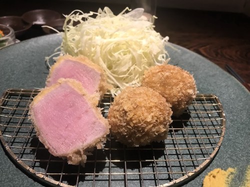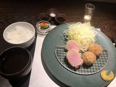 〜お口の中で肉汁があふて出る、旨味たっぷりの雪室熟成豚のメンチカツと、看板メニューのフィレカツとの組み合わせ。※店HPより