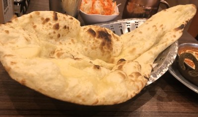 - いつものように、ナンを半分だけおかわりした。すると、、通常サイズの3/4以上もあろうかという大きなものが出てきた。この店でナンのおかわりする人、気をつけてネ。(😇苦情?それにしては嬉しそうな顔してるけど、、?)