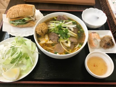 - 今日はベトナムのご当地グルメをいっぺんに堪能できる。わざわざ航空運賃を払って現地に赴くまでもない。世のベトナム好きのネエちゃんやおば、、いや中年女性たち、時間と金の浪費はやめなさいヨ。(😇はあ?あんた昔、ご当地グルメはその土地の空気を感じて味わうもので、B1グランプリなんぞ愚の骨頂とコケおろして、事務局長さんと喧嘩してたじゃないの、、?)