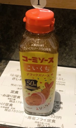 - ただ、そこに必要不可欠なのがソースだ。さて、ご当地のカゴメソースでもかけてと、、あれ?カゴメソースがない!代わりにコーミソースなるものがテーブルに鎮座している。これは一体?、、(😇この地ではカゴメよりクラスが上と言われてるンだけどネ。どう?おいしいでしょ?)(👿うン、そんな気がする、、?)