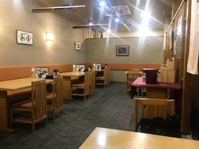 - ホテル内ダイニングに相応しいゴージャスな、、と思いきや下町のうどん屋さんのような店内。庶民的で肩が凝らない雰囲気がイイや。さすがアパホテルだ。(👨🦳お金持ちのお客さま用のお座敷個室もご用意できますが、、?)