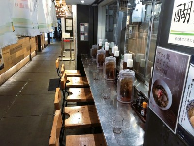 - この店は、通路の脇に付け足し的に存在している。しかもカウンター6席ほどしかない。これは、、驛麺通りの屋台だな。なんか貧乏臭くっていけネエや。(👨🦳ラーメン屋台の風情を再現してるですヨ。外より少しだけ暖かいし、、?)