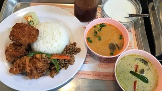 今日の ご近所はみだしサラメシは・・・東桜一丁目 『東桜パクチー 本店』バンコクランチ¥1230※ごはん・バジルチリ炒め・ハーブ風味の鶏からあげ・エビ団子の揚げ物・生春巻・グリーンカレー・鶏のトムヤムスープ・タイデザート(サークー・ガティ)...